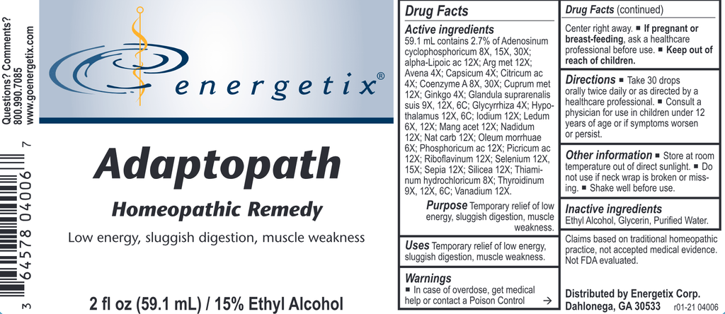 Adaptopath is a homeopathic combination formula for symptoms related to the absorption of nutrients and utilization of oxygen. Many practitioners find this formula to be invaluable when symptoms indicate systemic weakness and depletion, or developmental concerns.†