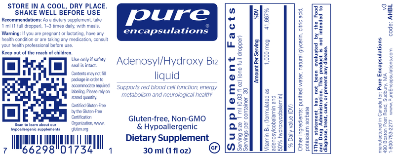 Adenosyl/Hydroxy B12 is a vitamin B12 blend formulated for nerve and mitochondrial support. Adenosyl/Hydroxy B12 helps support metabolism for the enzyme methylmalonyl-CoA as well as the synthesis of neuronal myelin.*