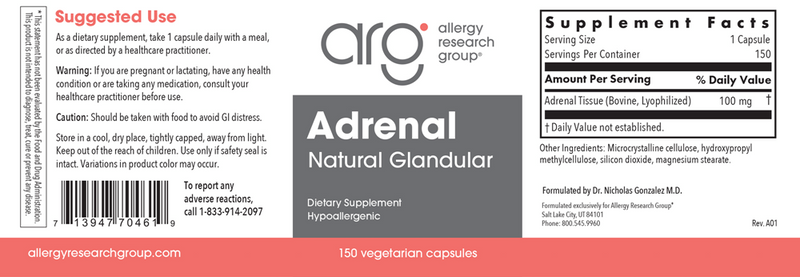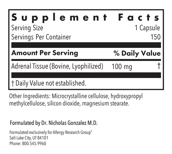 Provides tissue from the entire adrenal gland, both medulla and cortex portions. Our natural glandular material is derived from government-inspected, range-fed animals, raised in New Zealand and Australia, whose animal husbandry regulations are among the strictest in the world. The material is lyophilized, which means it is immediately frozen, then subjected to a high vacuum that vaporizes moisture directly from the solid state. Formulated by Dr. Nicholas Gonzalez M.D.