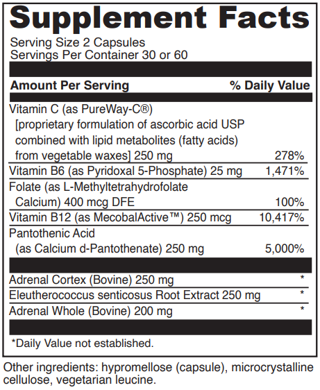 Adrenal Benefits™ is a dietary supplement to support adrenal function, energy levels and endocrine balance. This botanical and glandular combination product is geared toward supporting adrenal function by supporting healthy energy levels, HPA axis and endocrine balance, as well as by nourishing the adrenal glands themselves.