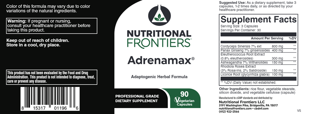 AdrenaMax by Nutritional Frontiers promotes resilience to stress by supporting the function of the adrenal glands.* The herbs in Adrenamax have traditionally been used to help with both hyper-function and hypo-function of the adrenal glands, hence they are classified as ‘adaptogens.*