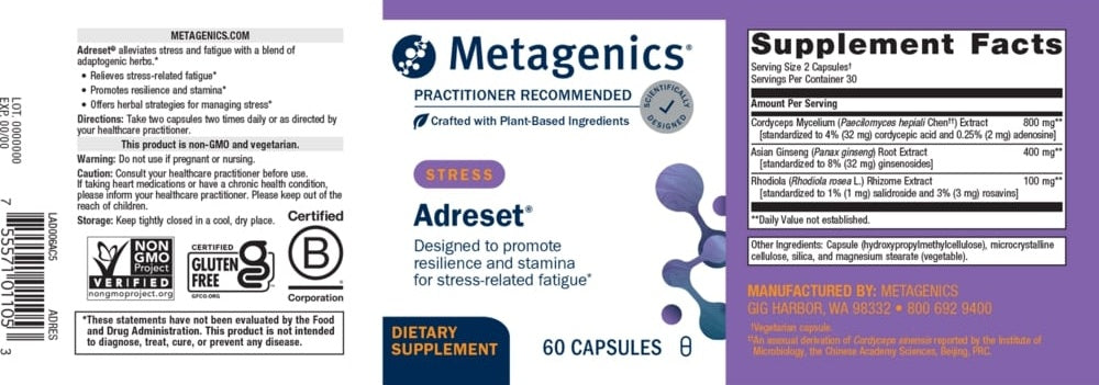 Adreset ® supports those feeling "stressed and tired" with a blend of adaptogenic herbs to promote a healthy and balanced response to stress. Adaptogens have a long history in herbal medicine, and research suggests they may reduce the negative side effects of stress.*