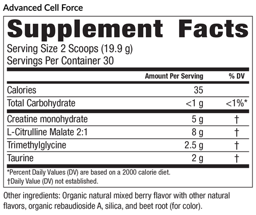 Unlock your brain and body's energy potential with Advanced Cell Force™, a cutting-edge blend of clinically dosed ingredients designed to fuel both immediate and long-term energy. Whether you need a pre-workout, all-natural boost or sustained vitality throughout the day, this potent, clean formula targets energy production at the cellular level, enhancing mitochondrial function and improving circulation. Experience mind and body energy like never before – naturally and sustainably.