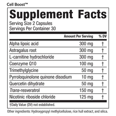 Cell Boost works from the cellular level and outwards to support anti-aging, boost mitochondrial health, enhance signaling proteins (like sirtuins), and improve DNA replication. By providing cells and their mitochondria they with the highest quality vitamins, antioxidants, and enzymes; Cell Boost rejuvenates and revitalizes your cells to reduce the impact of aging.