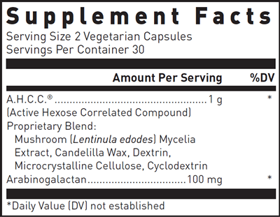Mushrooms have always been an important part of Asian medicine and are known to contain numerous substances that help to support the immune system. AHCC® is a unique mushroom-derived extract designed to provide support to the immune system. Derived from a patented cultivation, enzymatic decomposition and freeze-drying process of several kinds of Basidiomycetes mushrooms, the active compound in AHCC® is an α−1,4 linked glucose oligosaccharide with a molecular weight less than 5,000 daltons. This oligosaccharide cannot be found in typical mushroom preparations. Beta-glucans, amino acids and minerals present in AHCC® may also play important roles in its immune-supportive properties. Scientific studies using AHCC® in animals and humans suggest that it has immunomodulating activity.