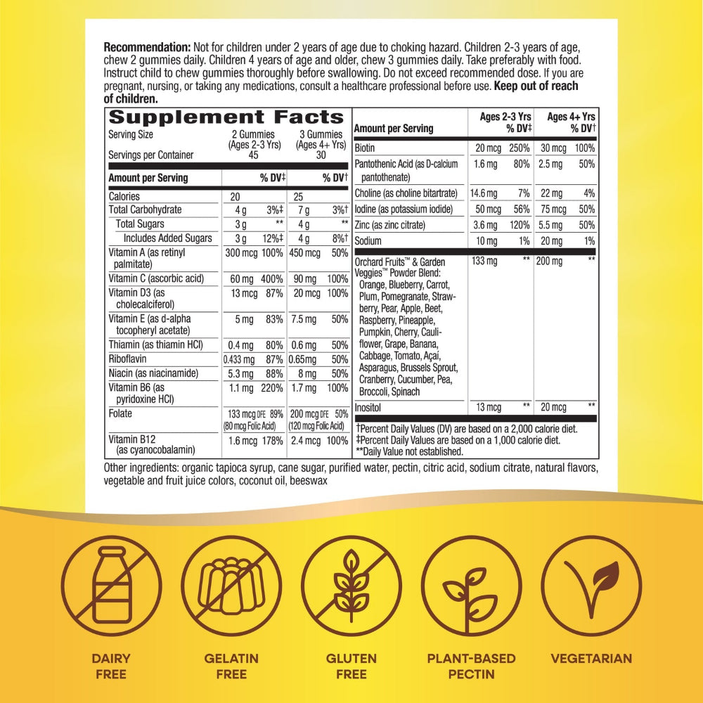 Help your child thrive by giving them the nutrition they need to grow and feel their best every day.* Alive! Kids Gummy Multivitamin contains 15 vitamins and minerals, plus our food-based Orchard Fruits™ & Garden Veggies™ powder blend (200 mg per 3 gummies).*
