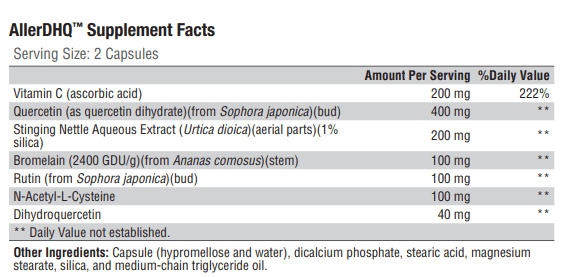 AllerDHQ™ incorporates bioflavonoids, micronutrients, proteolytic enzymes, and herbs into a comprehensive formula that provides multifaceted support for individuals with immune imbalances. Dihydroquercetin, a key component in AllerDHQ, inhibits oxidation, is bioactive, and is highly absorbable. AllerDHQ supports the body’s regulating function in addressing an overactive or distressed histamine response that are sometimes brought on by the environment.*