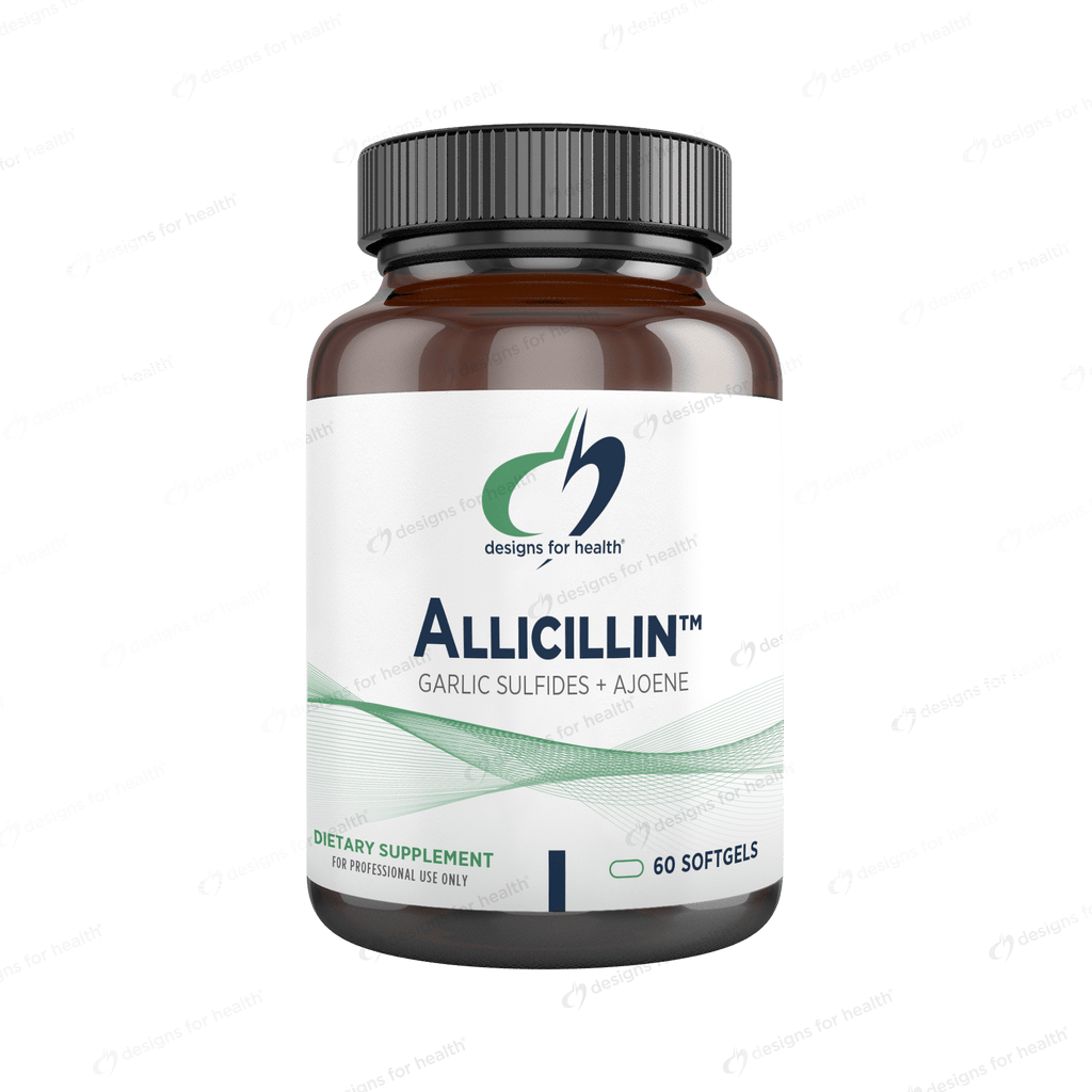 Allicillin™ is a blend of garlic oil and parsley oil containing ajoene and garlic sulfides, the primary bioactive compounds in garlic. These softgels are free of garlic odor because they are enteric-coated, allowing them to reach the small intestine before dissolving. This is unlike other products that dissolve in the stomach, which may result in them repeating on you and causing garlic breath. The parsley oil further helps as a natural breath freshener.