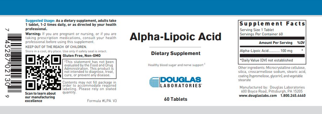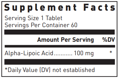Alpha-Lipoic Acid tablets, provided by Douglas Laboratories®, contain 100 mg of pure alpha-lipoic acid. Alpha-lipoic acid is a non-vitamin coenzyme that carries out important metabolic and antioxidant functions in the body.