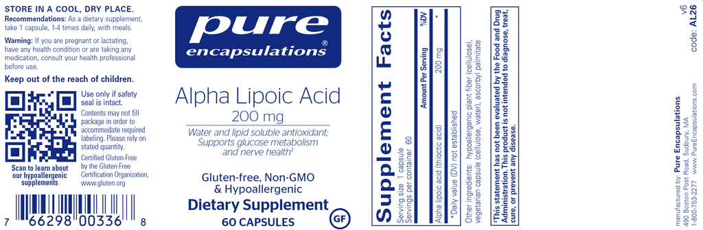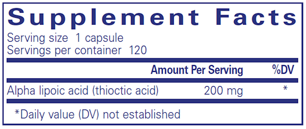 Alpha Lipoic Acid is a water and fat-soluble antioxidant. Alpha Lipoic Acid helps maintain healthy glucose metabolism, supports the nervous system and provides nutritional support for metabolic processes.*
