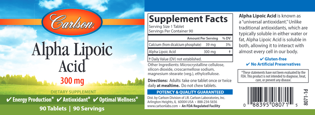 Alpha Lipoic Acid is recognized as a "universal antioxidant," since it's more versatile than most other antioxidants and actually enhances their effectiveness. Unlike traditional antioxidants, which are typically soluble in either water or fat, Alpha Lipoic Acid is soluble in both, allowing it to interact with almost every cell in our body. Alpha Lipoic Acid plays an important role in converting food to energy and can also help scavenge free radicals. It works well with other nutrients, such as glutathione and vitamins C and E, by regenerating them and extending their biochemical lives.