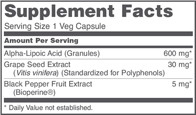 Alpha-Lipoic Acid (ALA) is a versatile free radical scavenger that helps to maintain neural health by promoting nerve cell glutathione production, preserving optimal blood flow, and supporting normal nerve cell glucose utilization.* ALA may help to support the maintenance of healthy neural tissues, proper glucose metabolism, and normal cardiovascular function.* Bioperine® is a standardized pepper extract that is known to enhance the bioavailability of some nutrients.*