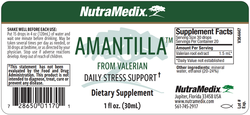 Life is busy, and everyday stressors can wreak havoc on your mood and normal routines. Unwind with Amantilla, a Sleep/Mood supplement that contains valerian root extract. Valerian root may promote a sense of calm and support a restful night’s sleep. Nutramedix's unique liquid formula provides easier delivery for those that don’t like swallowing pills and can be easily added to your daily or nightly routine.*