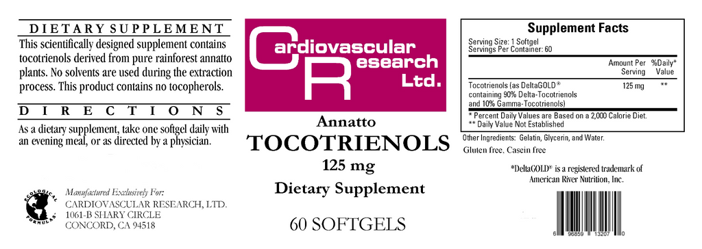 This scientifically designed supplement contains tocotrienols derived from pure rainforest annatto plants. No solvents are used during the extraction process. This product contains no tocopherols. Gluten free, Casein free.