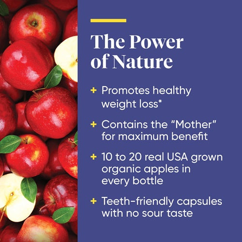 The Mother, comprised of the byproducts of fermentation, provides even more benefits than the vinegar itself, which is why we used every bit of it. Made from 10-20 real apples per bottle, Apple Cider Vinegar can support healthy weight loss in an easy-to-take capsule that won’t harm your teeth.* One serving is equal to a serving of liquid, and is raw and unfiltered. It’s all the good stuff, packed in a single capsule!