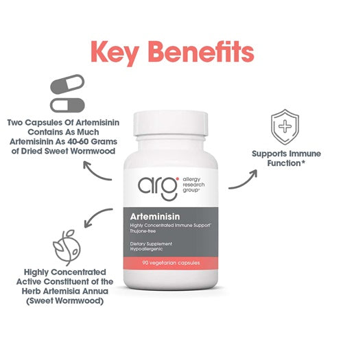 Allergy Research Group introduced artemisinin to the U.S. market more than three decades ago. Independent cell tests have verified its effectiveness, and we do independent potency assays on every batch, using HPLC. Allergy Research Group artemisinin is minimum 98.5% pure, and does not contain thujone. For more information about quality of artemisinin, see High Quality Artemisinin.