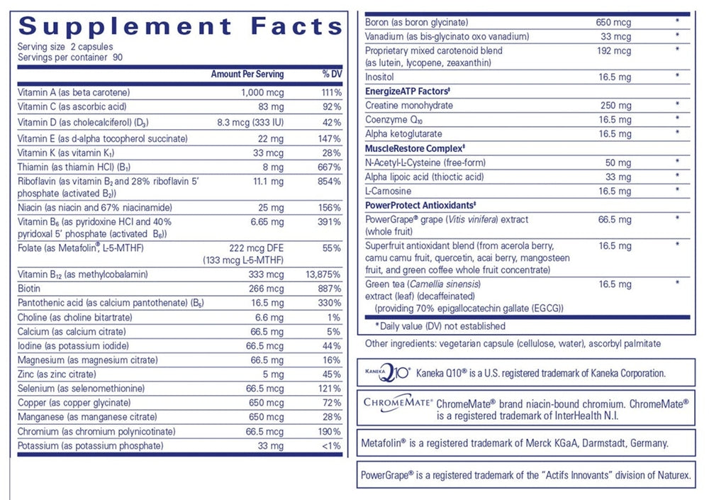 With Metafolin® L-5-MTHF; multivitamin/mineral complex for physical training and performance‡