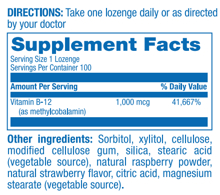 Reformulated B12-Plus supplies 1,000 mcg of methylcobalamin (considered to be the active form of Vitamin B12) in a small, once-daily pleasant-tasting lozenge.