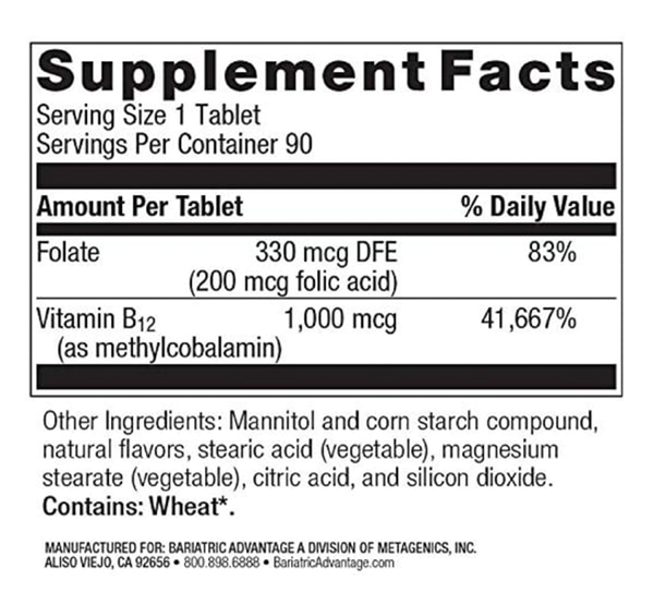 Bariatric Advantage SpeedyMelts®B12 delivers 1,000 mcg of high-quality vitamin B12 (as methylcobalamin) in a great-tasting, fast-melting formula designed to dissolve in the mouth. Available in delicious Black Cherry and Peppermint flavors, our B12 formula is just the right combination of great taste, smooth texture, and fast action to keep patients on track to achieve—and maintain—their vitamin B12 goals. Our B12 Speedy Melts are vegetarian.