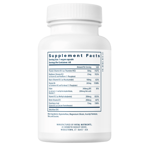B6 + B-Complex from Vital Nutrients combines a high dose of Vitamin B6 with a full spectrum of B vitamins to provide comprehensive support for female health and menstrual relief.* This formula aids in the metabolism of proteins, fats, and carbohydrates, and supports healthy nerve function.* Additionally, it helps in converting homocysteine, promoting heart health.* Ideal for addressing common menstrual cycle symptoms and supporting overall well-being.*