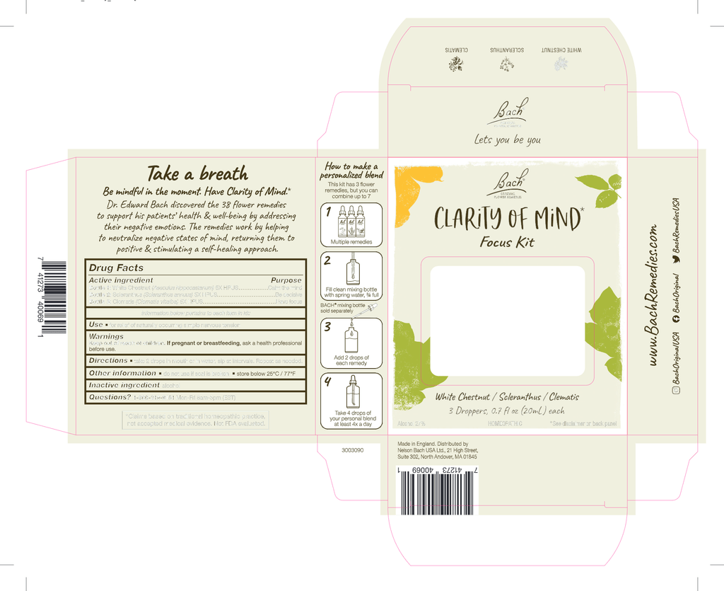 Contains 3 full-size Bach® Original Flower Remedies: White Chestnut, Scleranthus, Clematis. Can be taken individually (approximately 380 doses per bottle), or as a personalized blend.