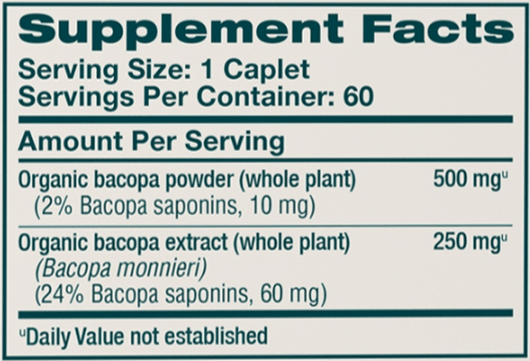 Himalaya Organic Bacopa supports memory and learning and empowers your clarity of thought. For cognitive support and mental alertness, this plant-based nootropic calms the senses and helps rest the preoccupied mind.*