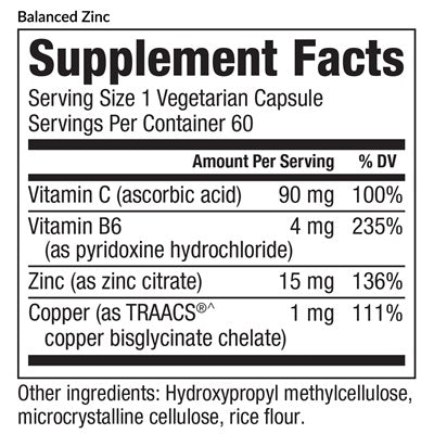 Maintaining a healthy immune system is best achieved with the powerful mineral zinc, but long-term use often depletes the body's natural copper levels. Balanced Zinc is a unique formulation for robust immunity, tissue development, and repair that includes important co-factors such as copper that allow for long-term use.