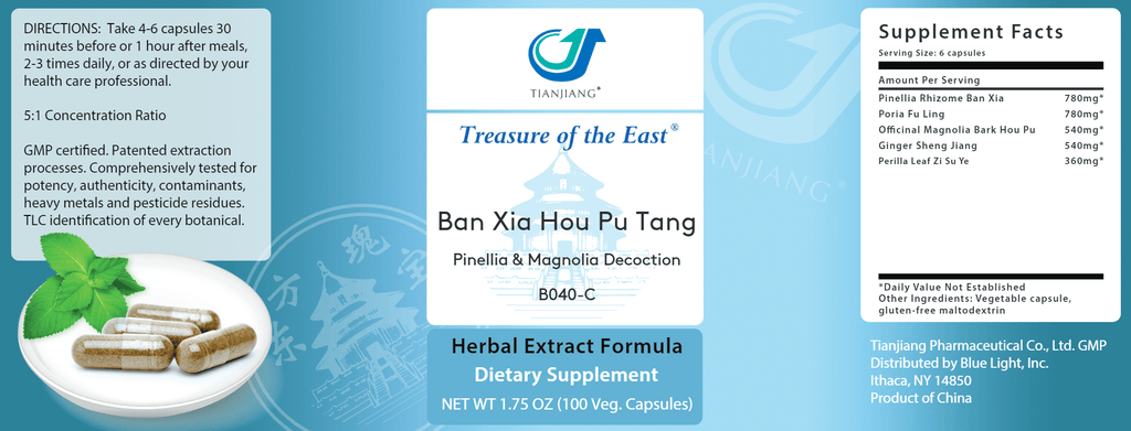 Ban Xia Hou Po Tang is used for combination of phlegm and Liver Qi Stagnation that is often manifested as Plum-Pit Qi. Ban Xia Hou Pu Tang is a safe and efficient way to address a broad range of concerns.