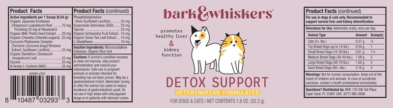 Continue taking the lead in your pet’s health with Bark & Whiskers™ Detox Support, formulated to help maintain your pet’s healthy liver and kidney function, which helps support his normal detoxification processes.