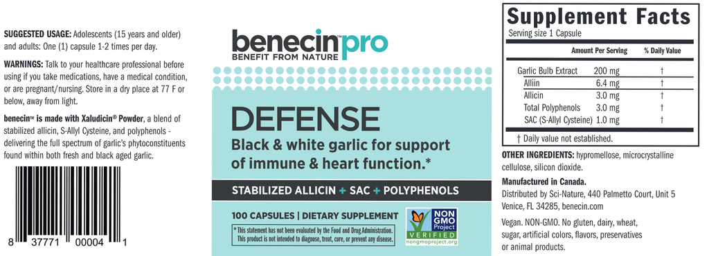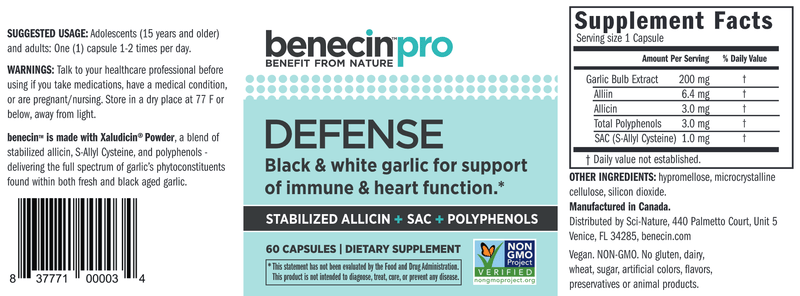 No other garlic supplement combines the power of white and black garlic. Benecin DEFENSE PRO contains over 20X the stabilized Allicin found in Professional brands with the added allicin absorption boosting and antioxidant power of the SAC and Polyphenols found in black garlic.