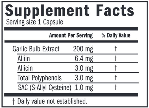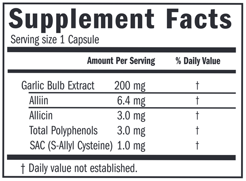 Contains 3,000 mcg of stabilized allicin per capsule combined with 1,000 mcg of SAC and 3,000 mcg of Polyphenols. Made with Xaludicin® Powder, a patented blend of white and aged black garlic extracts - delivering the full spectrum of garlic's phytoconstituents. This blend is more potent than allicin alone for immune and cardiovascular health.*