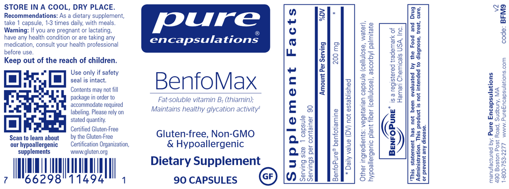 BenfoMax helps maintain healthy advanced glycation end (AGE) activity to support vascular, nerve, retinal and kidney cellular health. As a primary ingredient, benfotimine has been researched to support retinal function as well as nerve comfort.