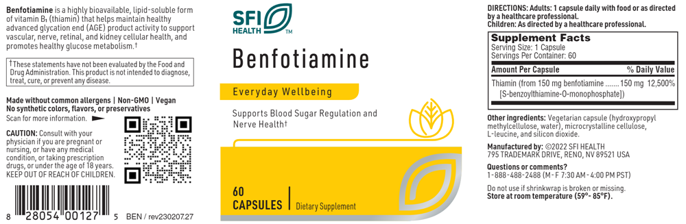 Benfotiamine is a highly bioavailable, lipid-soluble form of vitamin B1 (thiamin) that helps maintain healthy advanced glycation end product (AGE) activity to support vascular, nerve, retinal, and kidney cellular health, and promotes healthy glucose metabolism.†