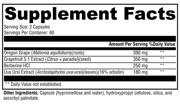 Berbemycin™ features berberine, a plant alkaloid broadly used in traditional Ayurvedic and Chinese herbal practices that has exhibited clinical benefits for supporting healthy microbial activity in the gastrointestinal tract. The complementary ingredients Oregon grape root, which naturally contains concentrated berberine, and grapefruit seed and uva ursi extracts also influence microbial activity.*