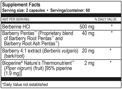 A uniquely full spectrum berberine product. Contains all of the barberry herb’s natural components, a high concentration of its main active ingredient berberine, plus the plant’s natural salts and minerals. Bioperine® included in order to further enhance bioavailability.* Contains no milk, eggs, fish, Crustacean shellfish, tree nuts, peanuts, wheat, or soybeans. Vegetarian capsules.