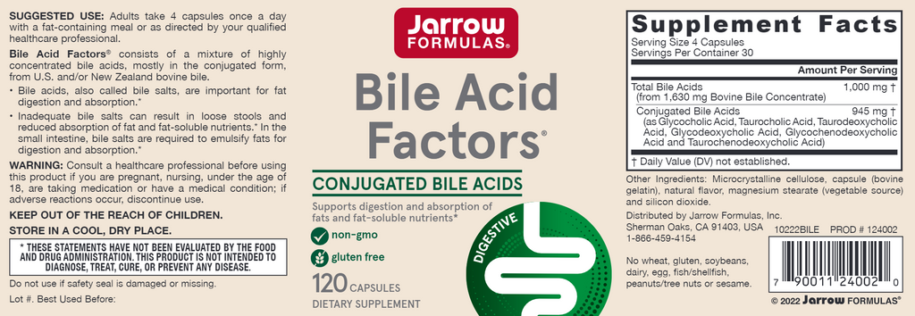 Bile Acid Factors® consists of a mixture of highly concentrated bile acids, mostly in the conjugated form (also called bile salts), from U.S. and/or New Zealand bovine bile.