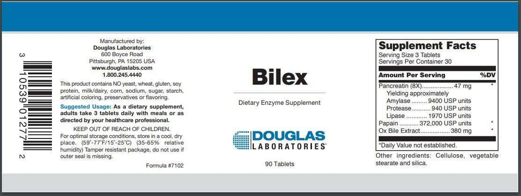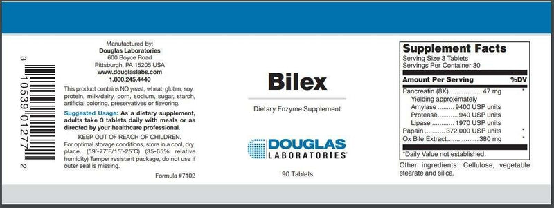 Bilex, provided by Douglas Laboratories, is a synergistic dietary enzyme formula that is specially formulated for digestive support.