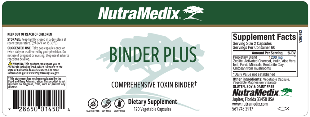 Binder Plus consists of a proprietary blend of inulin, bentonite zeolite, aloe vera, activated charcoal, fulvic minerals, and chitosan. These ingredients may help synergistically support healthy detoxification pathways to detoxify the body’s natural toxins.