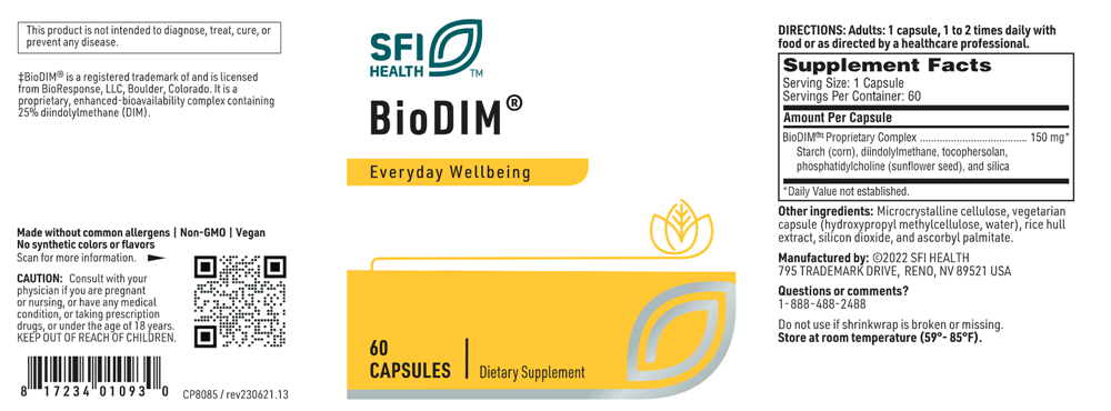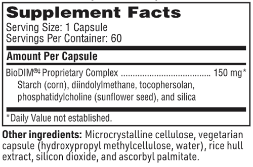 ‡ BIODIM® is a registered trademark of and is licensed from BioResponse, LLC, Boulder, Colorado. It is a proprietary, enhanced-bioavailability complex containing 25% diindolylmethane (DIM).