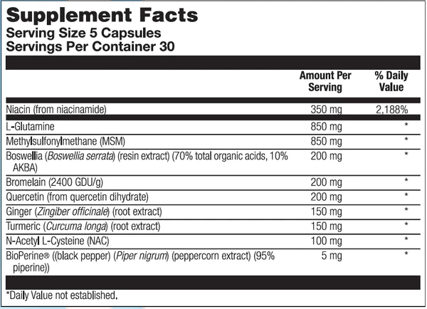 Use only as directed. Take 5 capsules up to four times daily away from meals or as directed by your healthcare practitioner.
