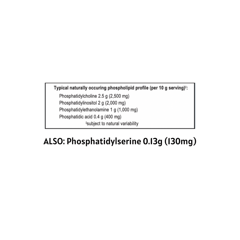 Comprehensive Phospholipid Profile: Includes phosphatidylcholine (PC), phosphatidylserine (PS), phosphatidylethanolamine (PE), and phosphatidylinositol (PI) for a more complete, synergistic approach to cellular membrane health, cell signaling, and mitochondrial function.