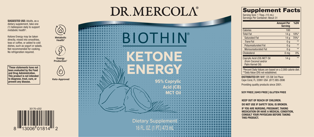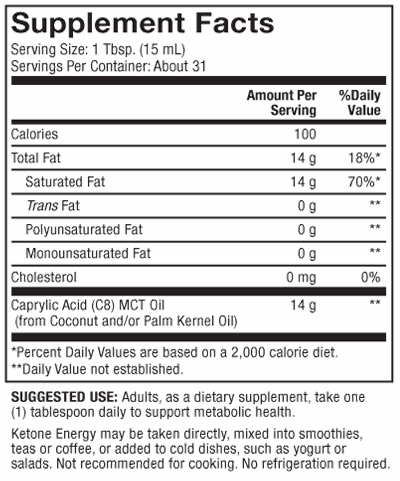 Biothin® Ketone Energy MCT Oil is 95% Caprylic Acid (C8) MCT Oil (the other 5% is C10) and: