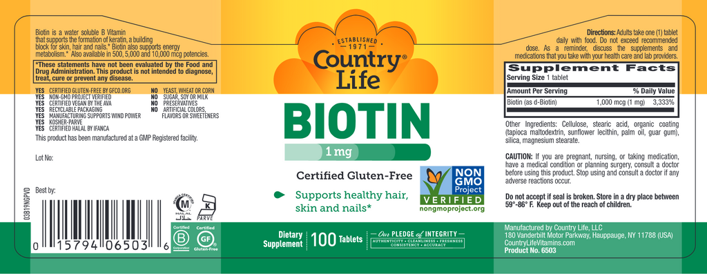 Biotin is a water soluble B vitamin that supports the formation of keratin, a building block for skin, hair and nails.** Biotin also supports energy metabolism.**
