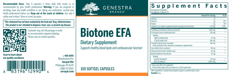 Biotone EFA is a unique blend of lecithin-derived free plant sterols, essential fatty acids, and antioxidants. Free-form plant sterols may help to promote healthy lipid metabolism. A serving of Biotone EFA supplies 448 mg of plant sterols.