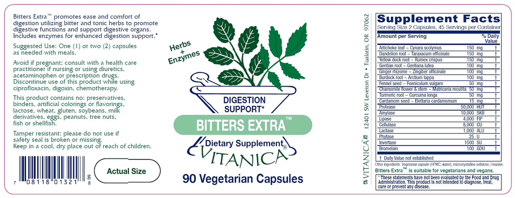 Good digestion is a foundation of good health. Traditional herbal bitters are a popular, natural way to support digestion. The convenient capsule makes it easy to take daily or as needed, with meals. *