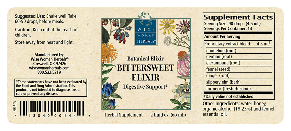 According the U.S. Department of Health and Human Services, as many as 60-70 million people suffer from digestive diseases annually. Prescription medications can cause unwanted side effects, especially combined with multiple other medications. With such prevalent stomach and digestive disorders, the need for natural solutions is becoming pressing. Wise Woman Herbals® Bittersweet Elixir was designed to naturally support a normal healthy appetite and promote optimum digestion while tasting great.