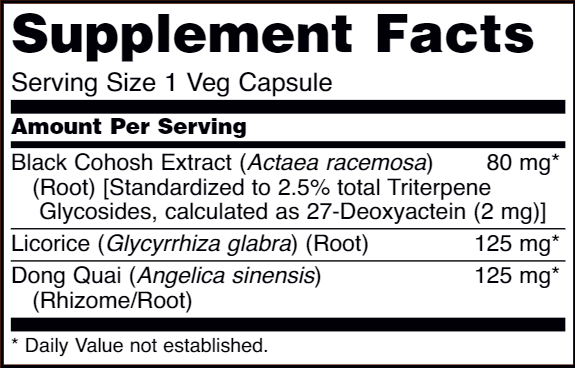 Black Cohosh is a plant that has been historically used by Native American women. Current scientific research shows that Black Cohosh Root may help support a healthy response to the natural changes occurring during menopause. NOW® Black Cohosh Root also includes Licorice Root and Dong Quai, which have enjoyed widespread popularity in Asia for centuries, especially among middle aged women.