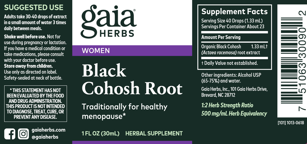 Keeping the body and mind balanced through the hormonal fluctuations of menopause is key to enjoying life more, as you move from one phase to the next. Gaia Herbs Black Cohosh Root is a single-herb liquid extract traditionally for healthy menopause.