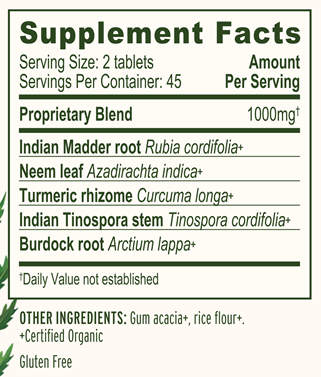 Featuring Ayurveda's most renowned blood cleansing herbs, this powerful blend removes excess heat and natural toxins from the liver, lymph, and blood. By cleansing and cooling the system from within, it naturally promotes clear and radiant skin.*