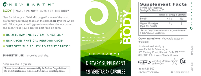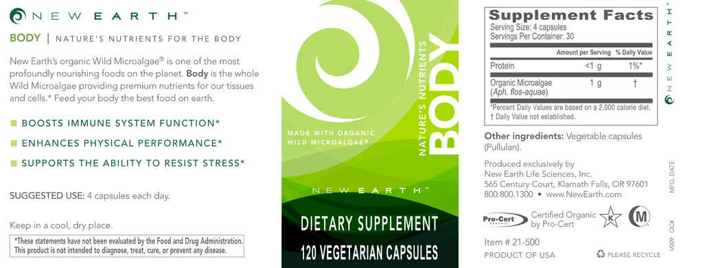 The Original New Earth Discovery! Body is a complete superfood strain of wild blue-green algae found only in Klamath Falls, Oregon. It is the most well rounded and powerful individual supplement on the planet.